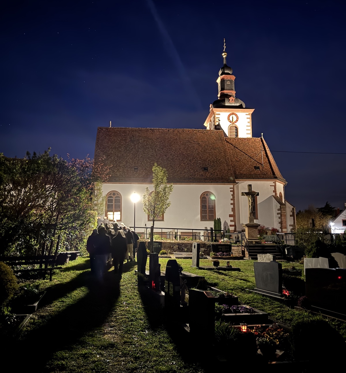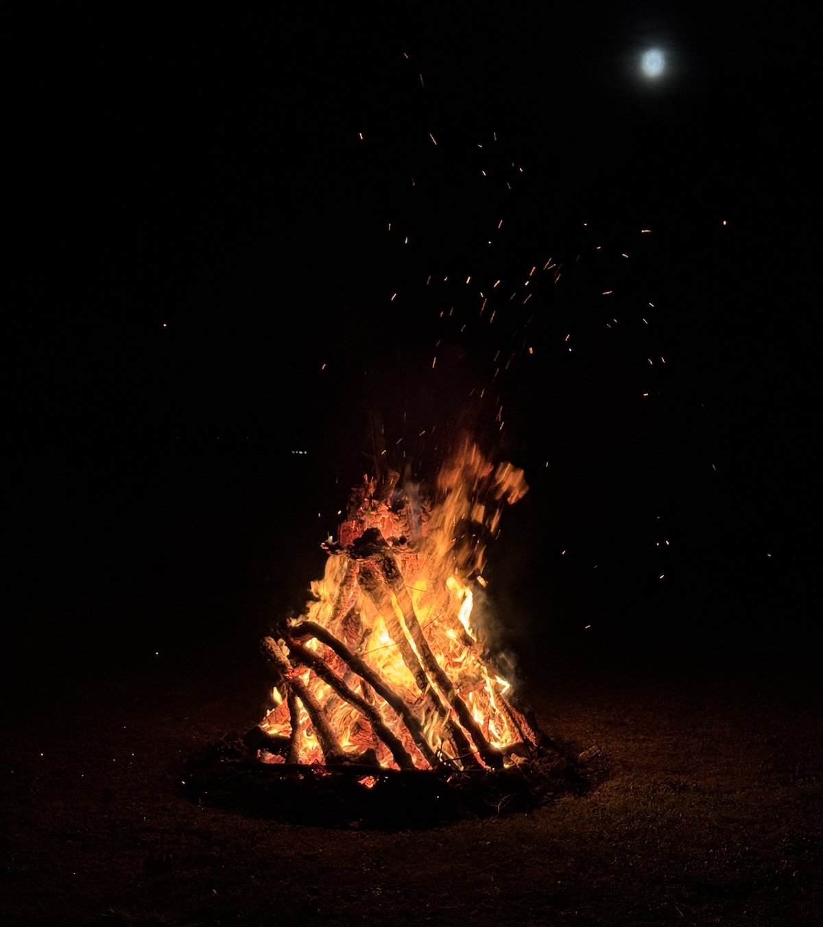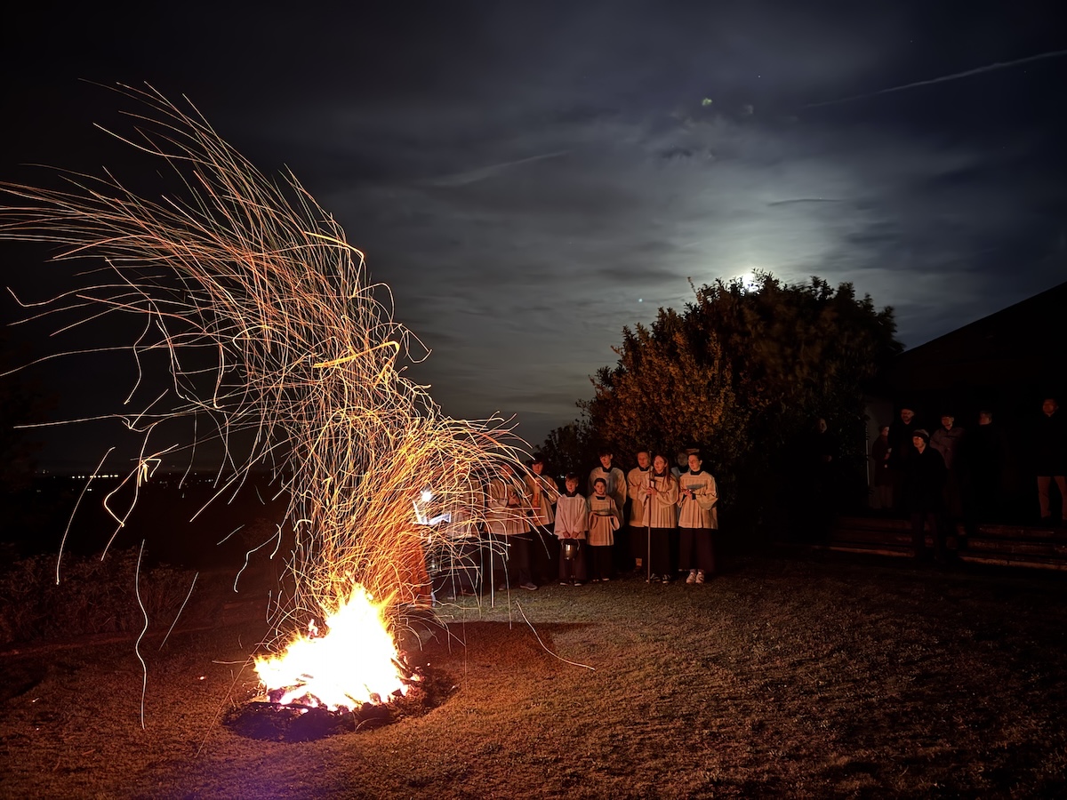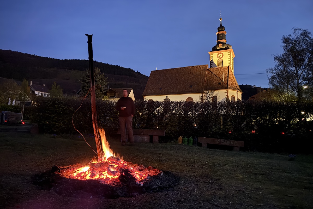 Zum Schein des Osterfeuers und des hellen Mondes fand sich die Gemeinde in der Osternacht unterhalb der Kirche ein, um gemeinsam diesen besonderen Moment zu feiern.